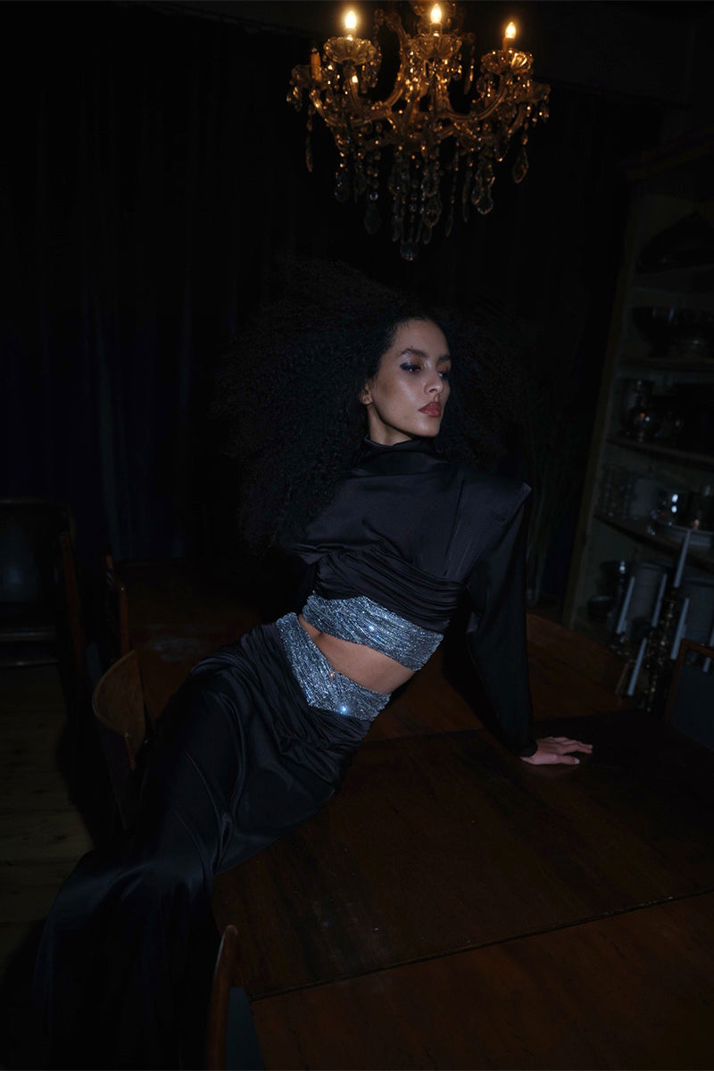 - Black satin fabric
