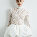 CATROUX MINI PEPLUM DRESS IN CHANTILLY LACE