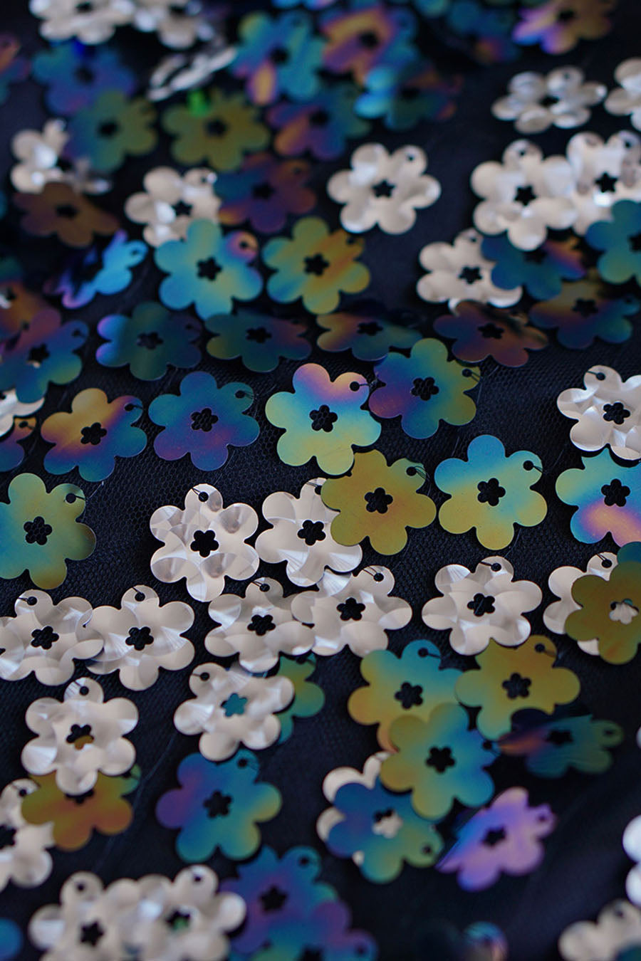 Sensitive item, use with caution. As the sequins are large and dense, they might tangle with each other and fall if not well kept. Keep away from extreme heat and water to preserve the color of the sequins. In case one or more of the sequins fall, you can sew on the extra sequins provided with your order. To achieve a 3-dimensional form, make sure to hand sew with a single point line. If the sequins are bent or deformed, use steam to get rid of the creases. Store in a separate garment bag to prevent damage due to tangling and tugging. Keep away from water and extreme heat to prevent discoloration.