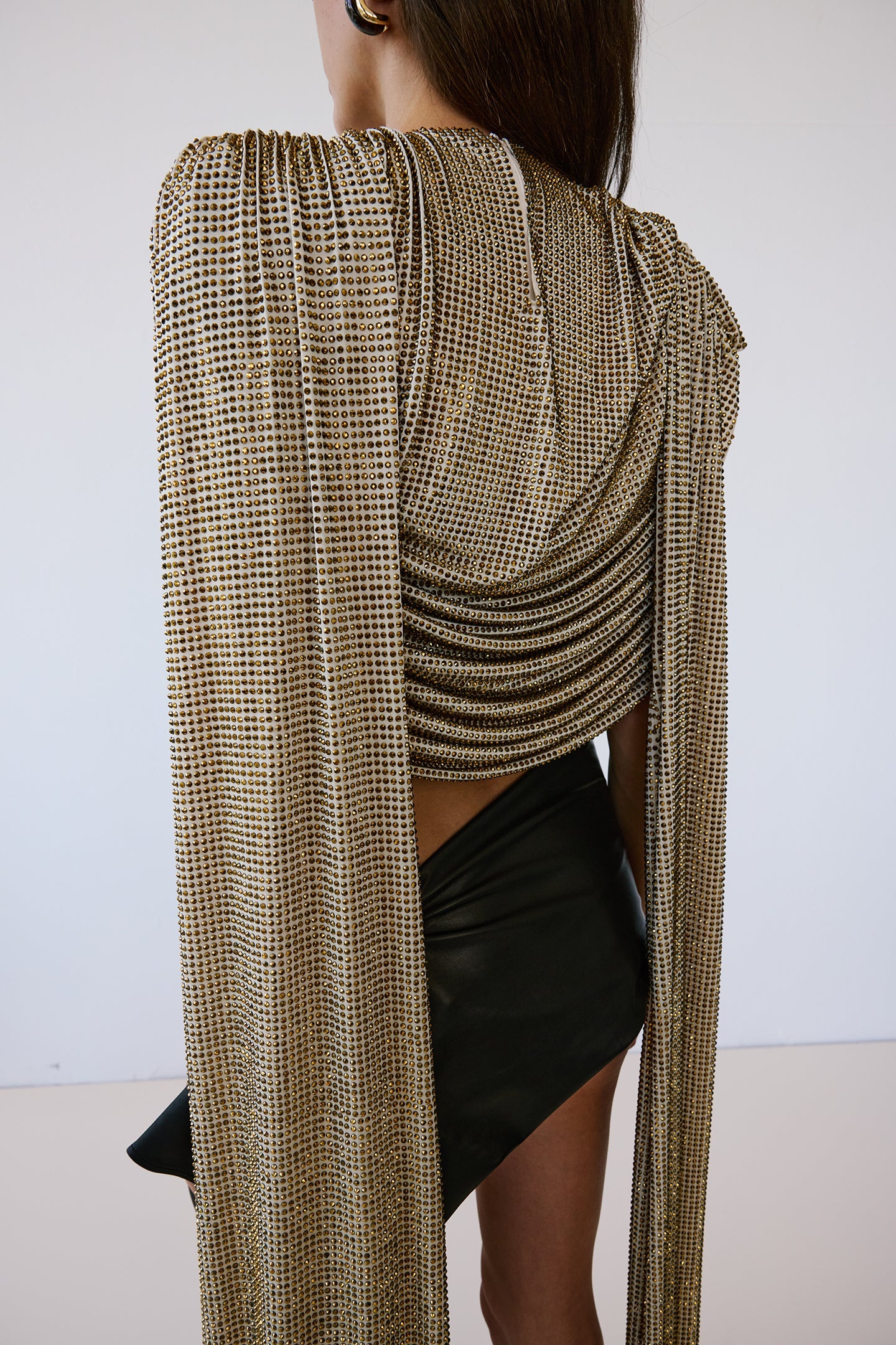 - Store on a padded hanger; avoid sharp folds to protect the drape and shine