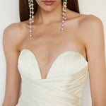 - Glossy ivory satin with soft drape and subtle luminosity