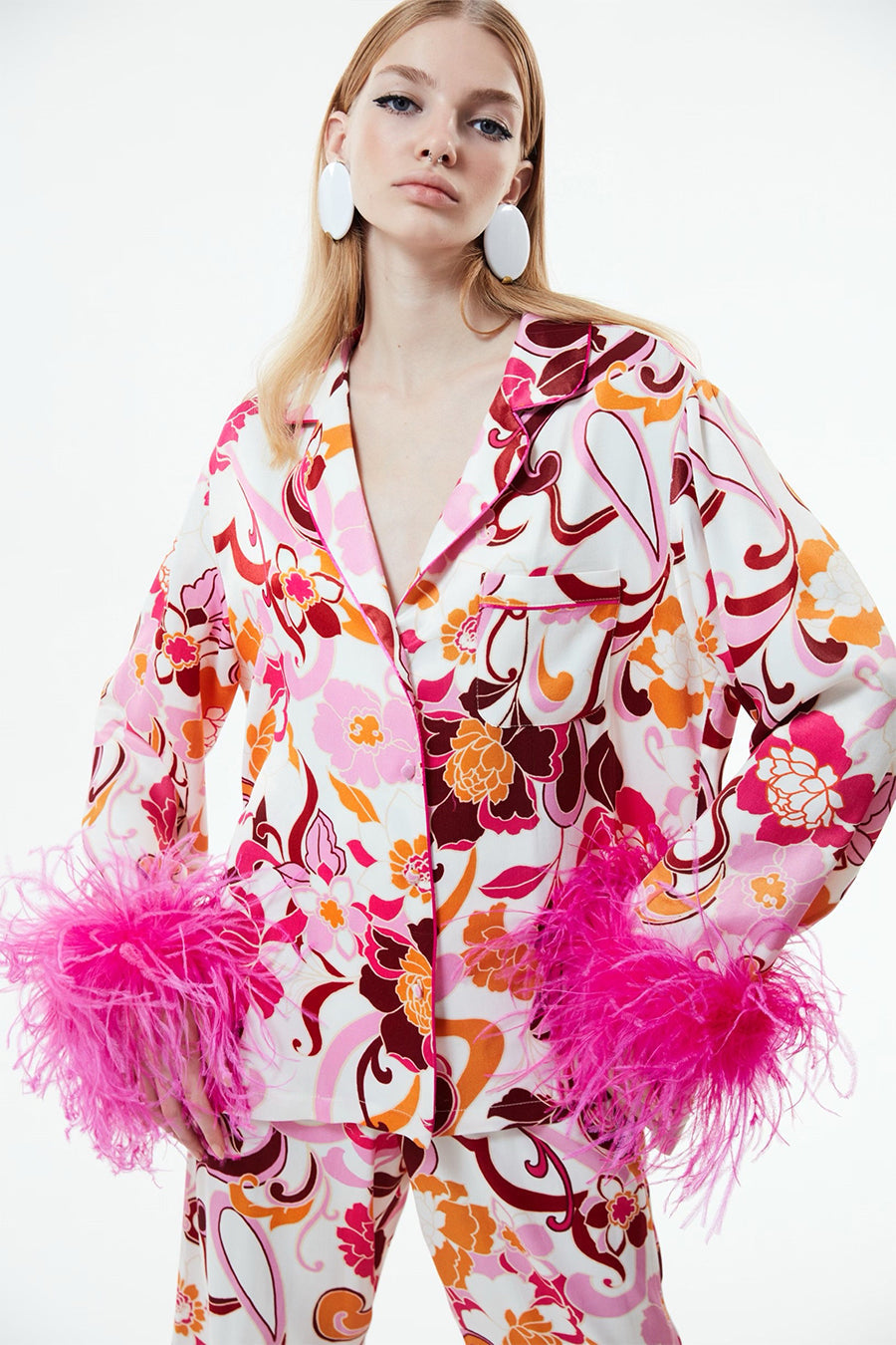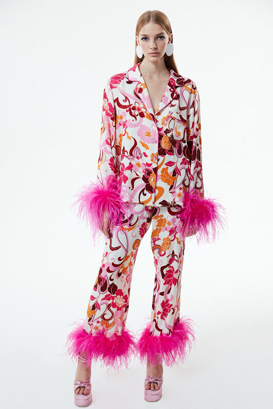Toutes les plumes sont des plumes d'autruche 100 % teintées. Elles sont produites dans le respect total du cadre de production durable et proviennent d'exploitations agricoles certifiées. Conserver dans un environnement frais et sec. Tenir à l'écart de l'eau et de l'humidité pour éviter toute décoloration. Les plumes n'étant pas synthétiques, il est probable qu'elles perdent un peu de poils. Toutes les plumes sont cousues à la main sur la robe. Avant de remettre la robe au nettoyage à sec, les plumes doivent être retirées et recousues après le nettoyage de la robe.