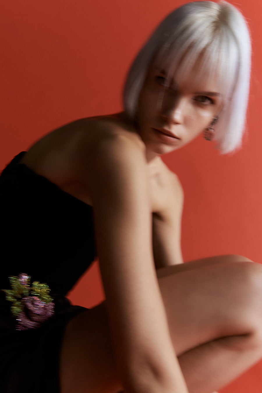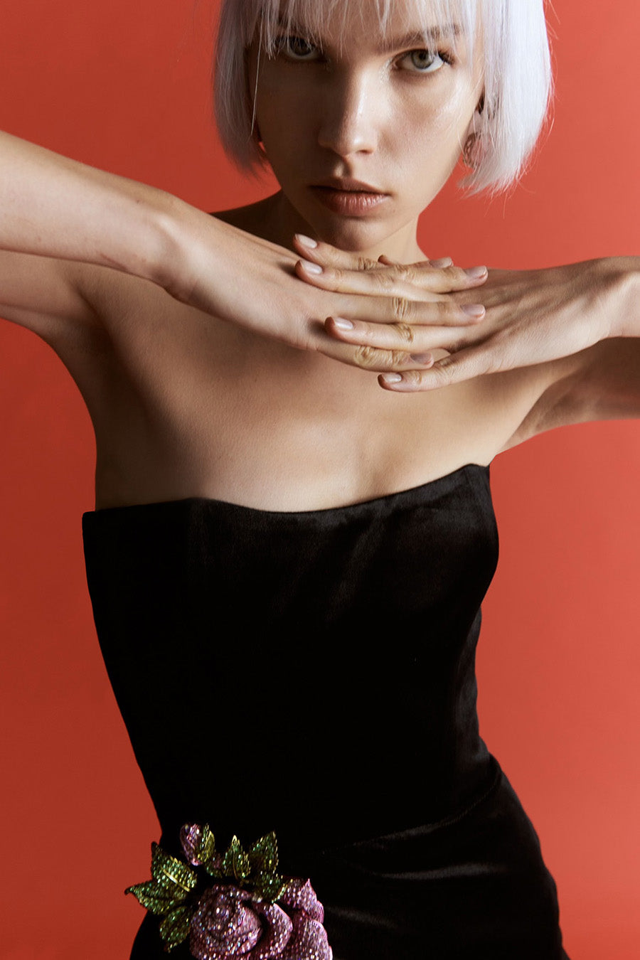 N'utilisez pas trop de vapeur pour éviter de déformer la robe. Tenir à l'écart de l'eau et de la chaleur. Lorsque vous confiez l'article au nettoyage à sec, assurez-vous qu'aucune eau n'est utilisée pendant le processus de nettoyage. Ne pliez pas l'article car le pliage peut endommager l'entoilage, n'utilisez pas de cintre à pince sur les bonnets avant.