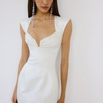 - Sweetheart neckline with a clean tailored finish