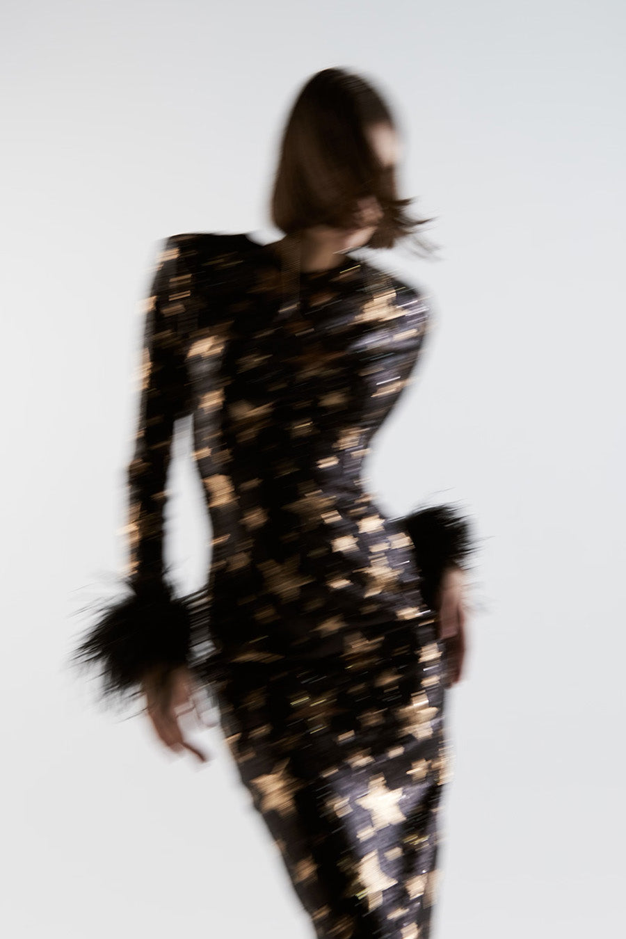 Toutes les plumes sont des plumes d'autruche 100 % teintées. Elles sont produites dans le respect total du cadre de production durable et proviennent d'exploitations agricoles certifiées. Conserver dans un environnement frais et sec. Tenir à l'écart de l'eau et de l'humidité pour éviter toute décoloration. Les plumes n'étant pas synthétiques, il est probable qu'elles perdent un peu de poils. Toutes les plumes sont cousues à la main sur la robe. Avant de remettre la robe au nettoyage à sec, les plumes doivent être retirées et recousues après le nettoyage de la robe.