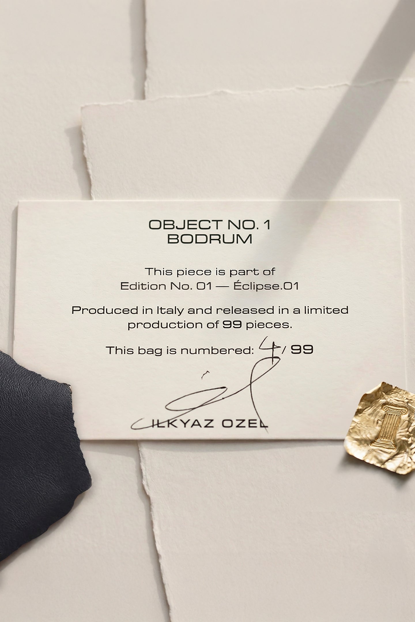 Inside each bag is a card signed by Ilkyaz Ozel and individually numbered, identifying the edition and the exact piece within it. More than an authentication detail, it is part of the object itself - a record of its release, its rarity, and the fact that it was made to exist only once in this form.