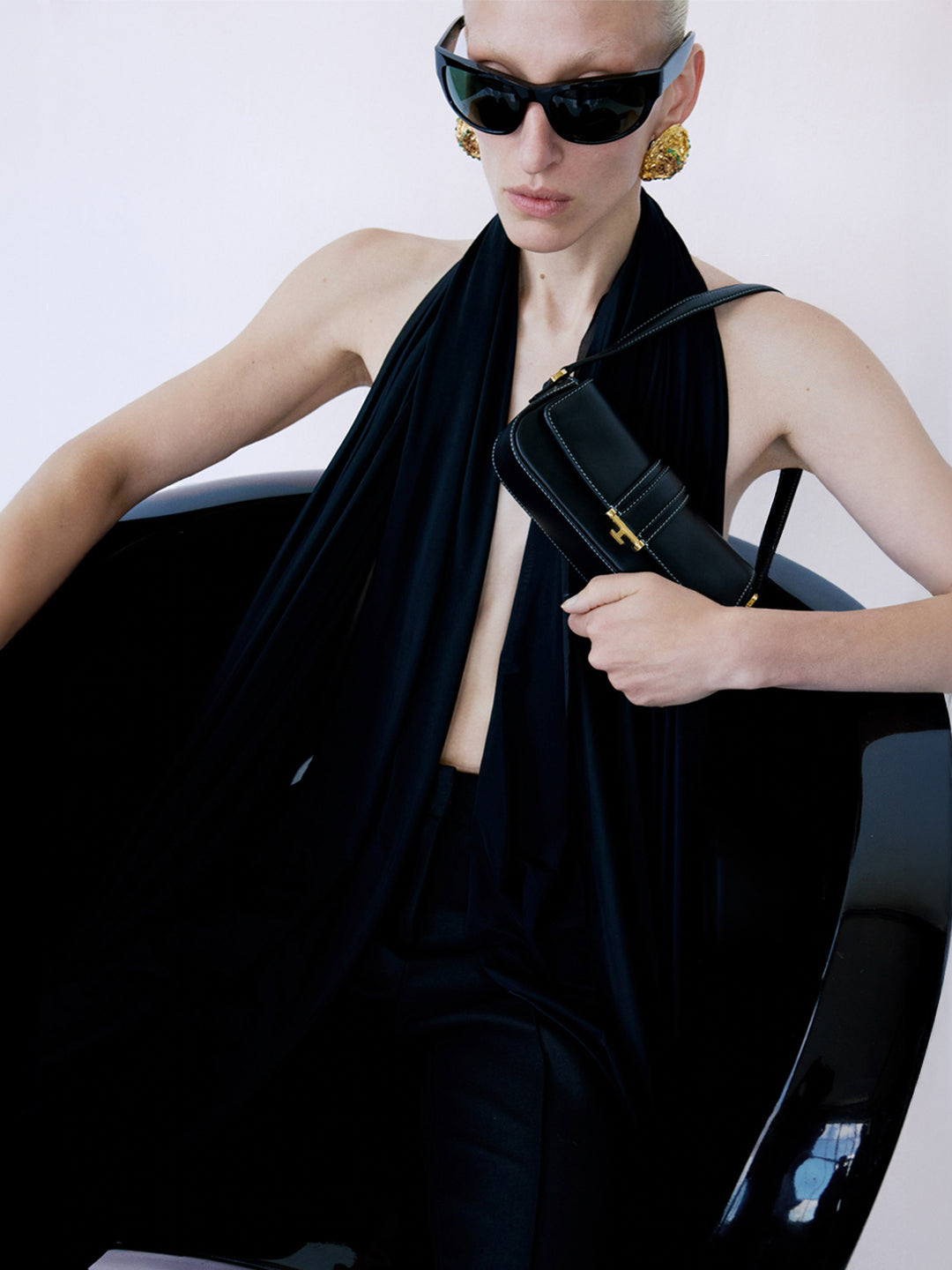- Closure: front flap with signature column-shaped clasp and concealed side magnets