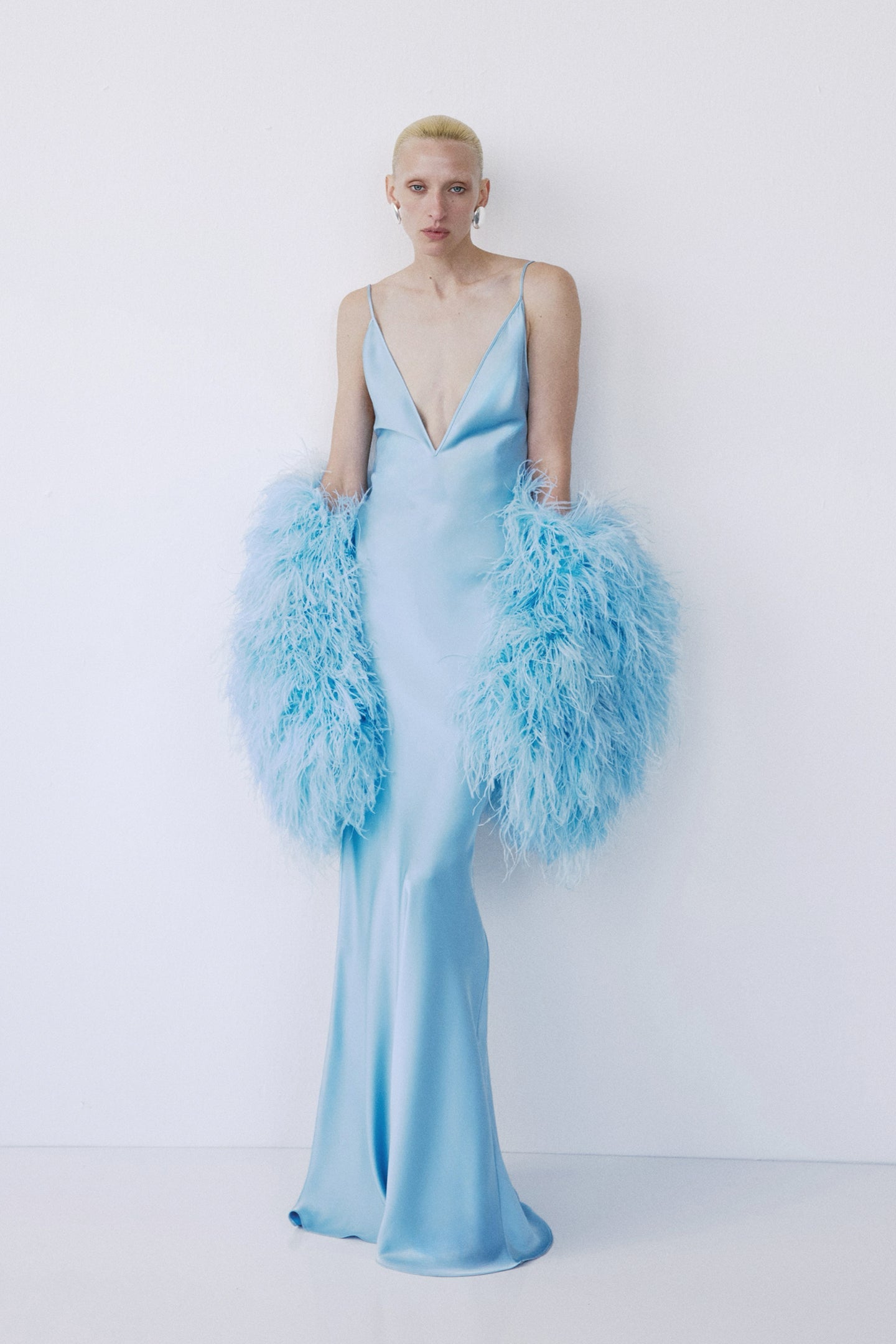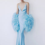 • Ostrich feather detailing