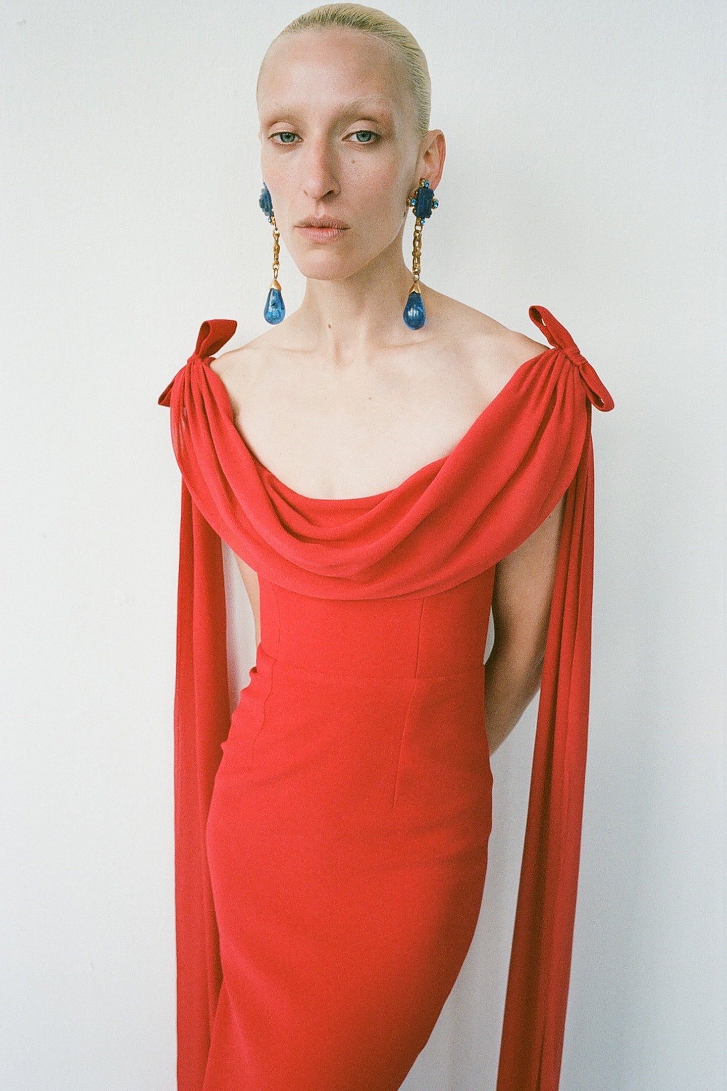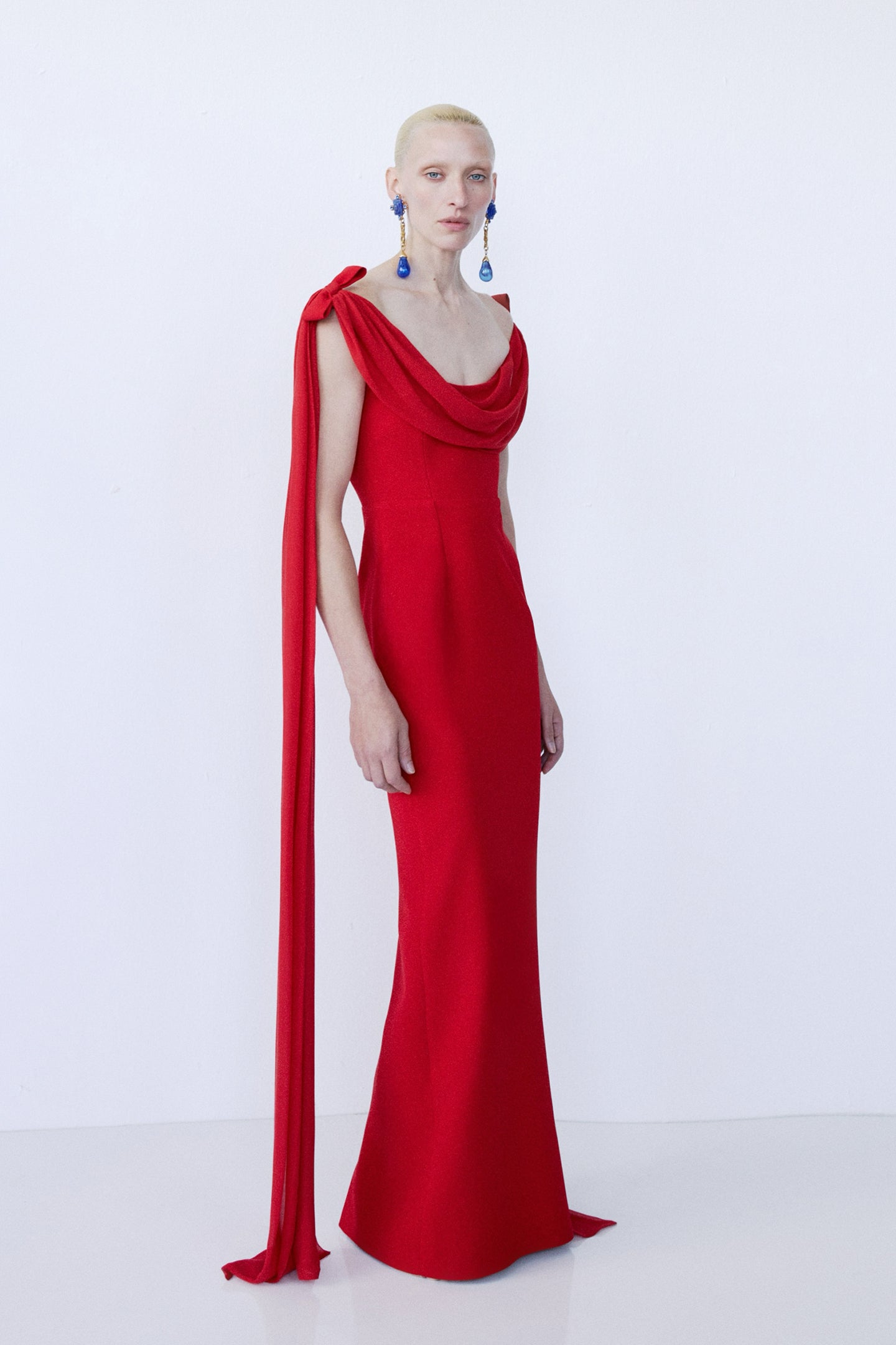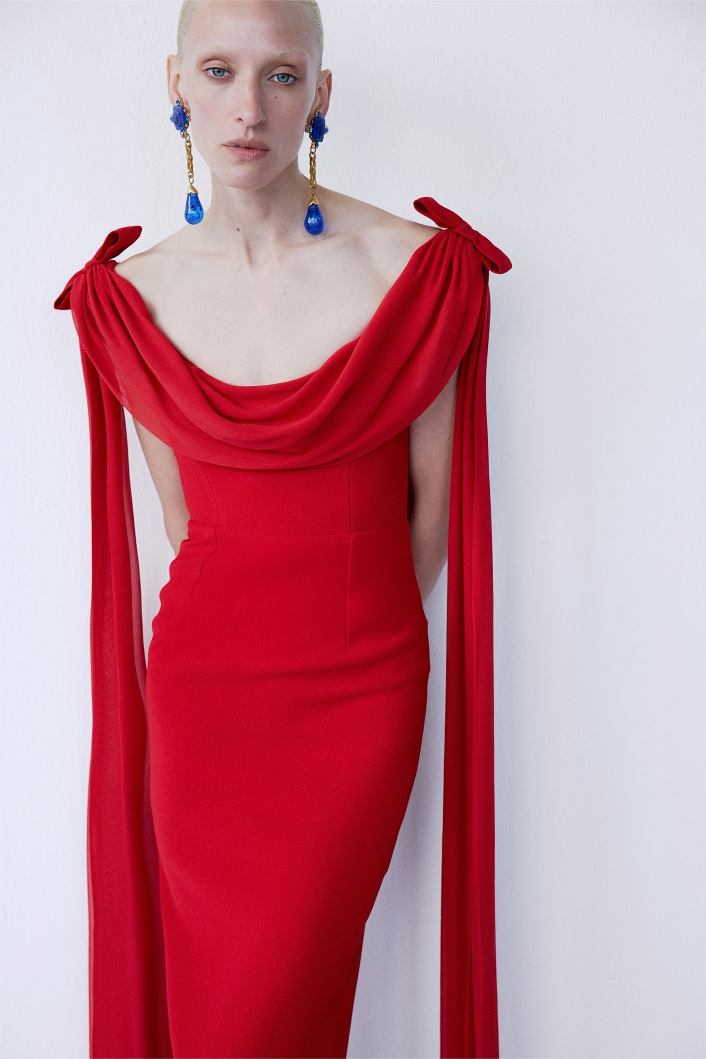 - Soft drape overlay at neckline