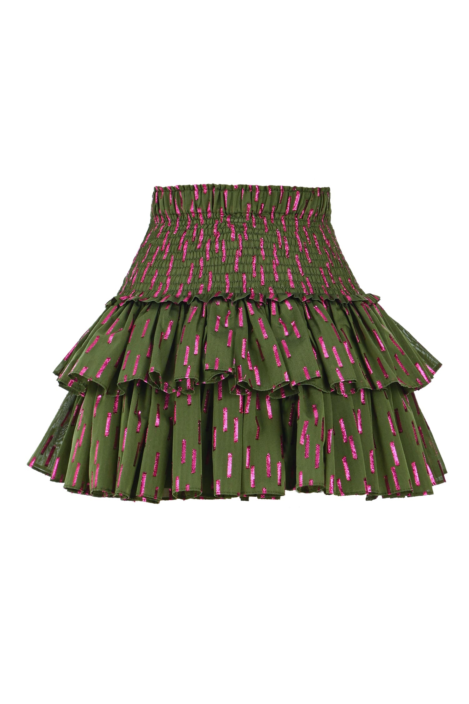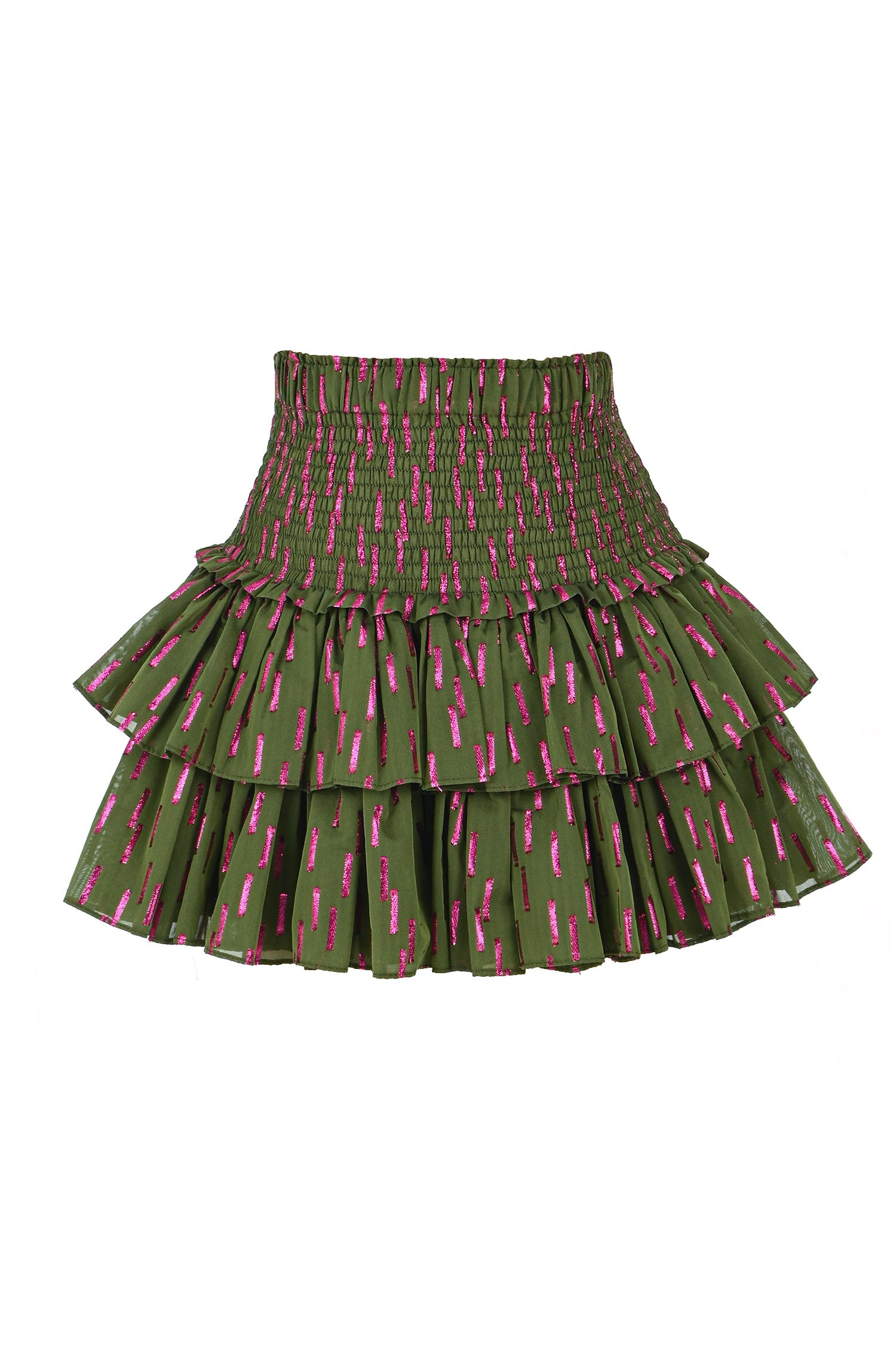 - Minigonna con corpetto in gomma gipe tagliato, volano a strati