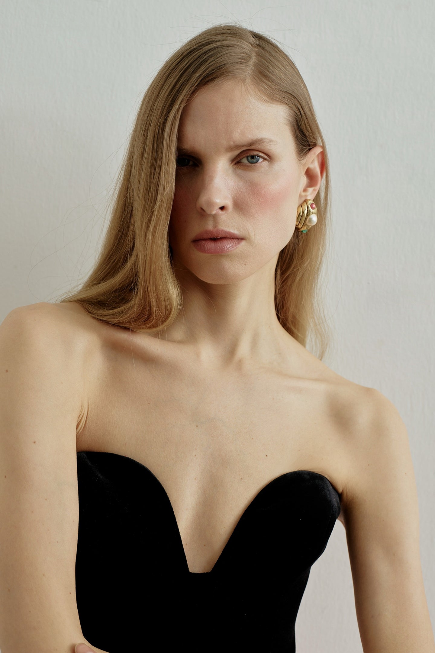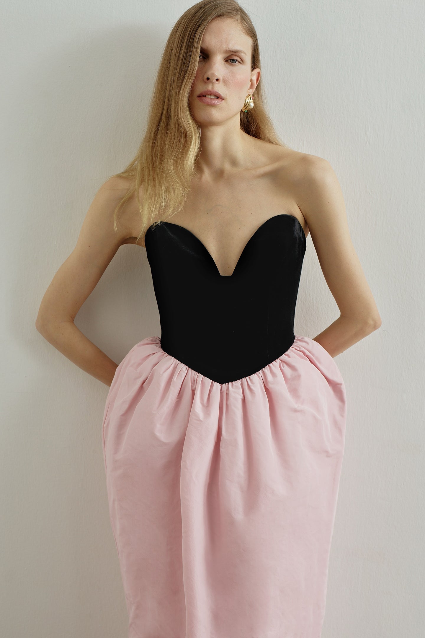- Strapless sweetheart neckline