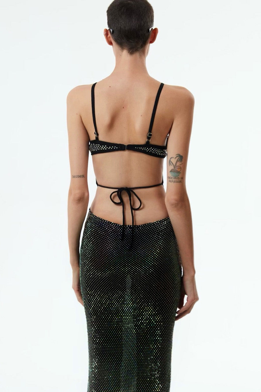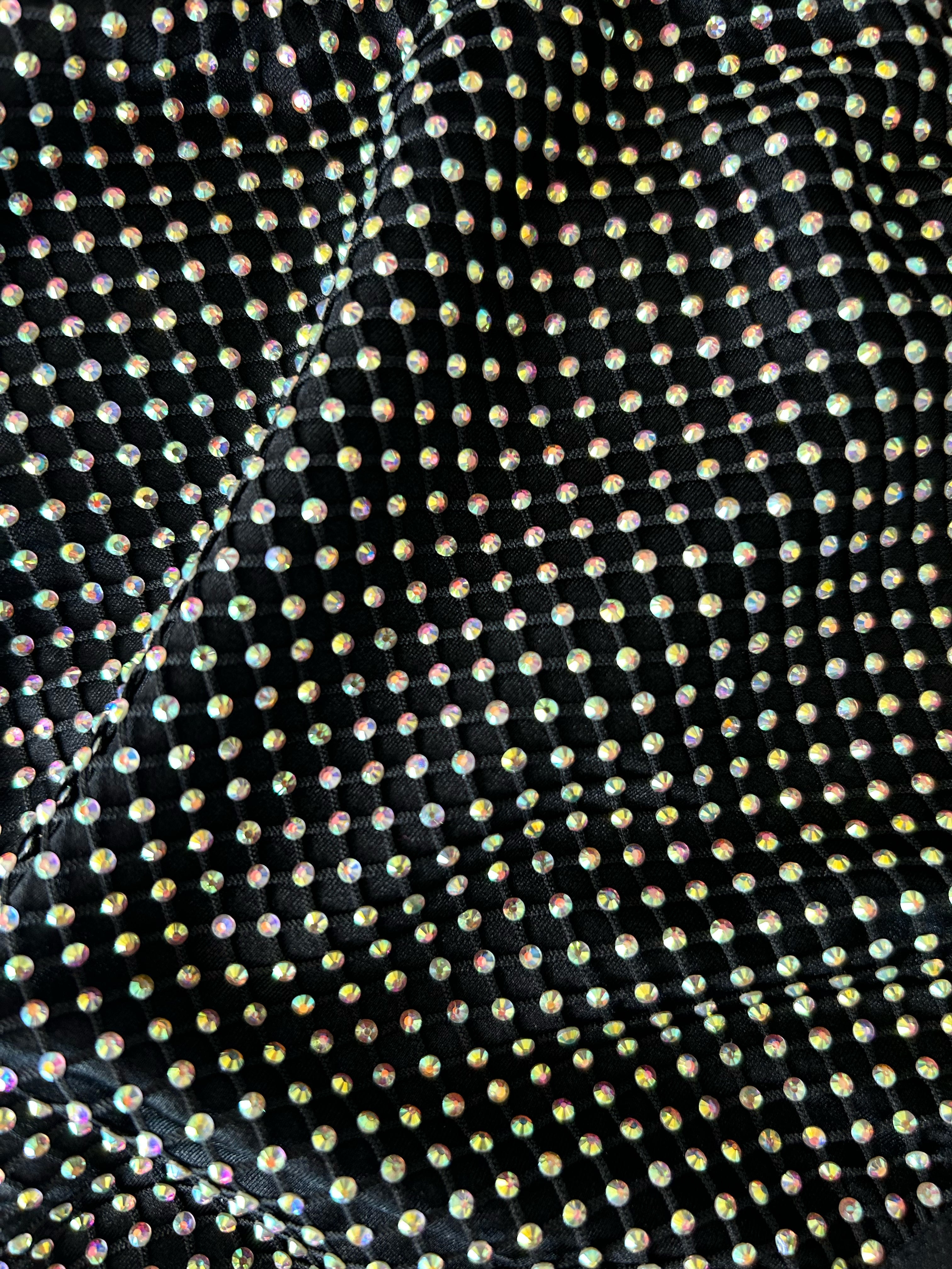 • Crystal embellished fishnet fabric