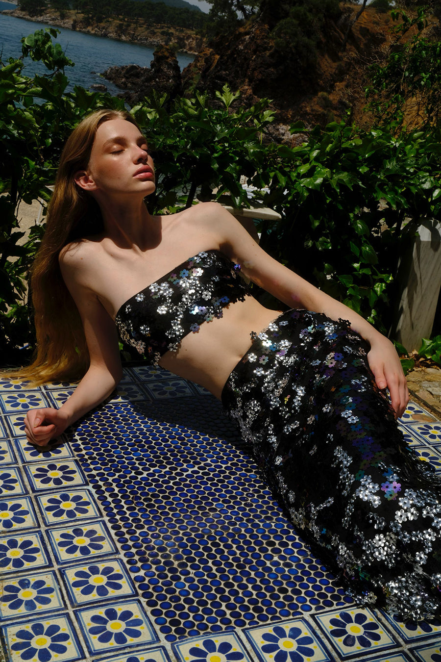 Sensitive item, use with caution. As the sequins are large and dense, they might tangle with each other and fall if not well kept. Keep away from extreme heat and water to preserve the color of the sequins. In case one or more of the sequins fall, you can sew on the extra sequins provided with your order. To achieve a 3-dimensional form, make sure to hand sew with a single point line. If the sequins are bent or deformed, use steam to get rid of the creases. Store in a separate garment bag to prevent damage due to tangling and tugging. Keep away from water and extreme heat to prevent discoloration.