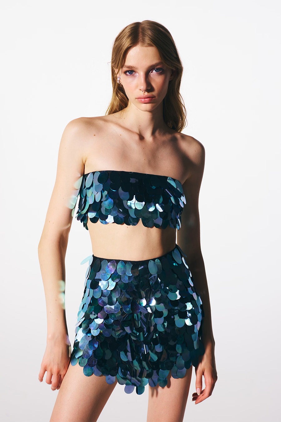 Sensitive item, use with caution. As the sequins are large and dense, they might tangle with each other and fall if not well kept. Keep away from extreme heat and water to preserve the color of the sequins. In case one or more of the sequins fall, you can sew on the extra sequins provided with your order. To achieve a 3-dimensional form, make sure to hand sew with a single point line. If the sequins are bent or deformed, use steam to get rid of the creases. Store in a separate garment bag to prevent damage due to tangling and tugging. Keep away from water and extreme heat to prevent discoloration.