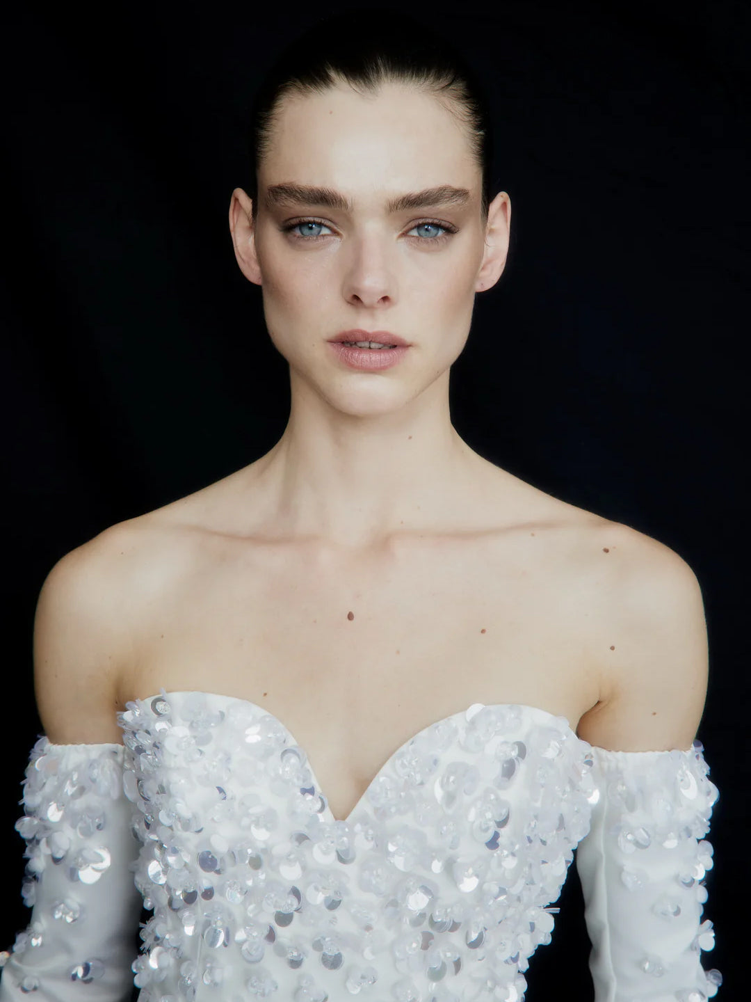 - With long gloves
